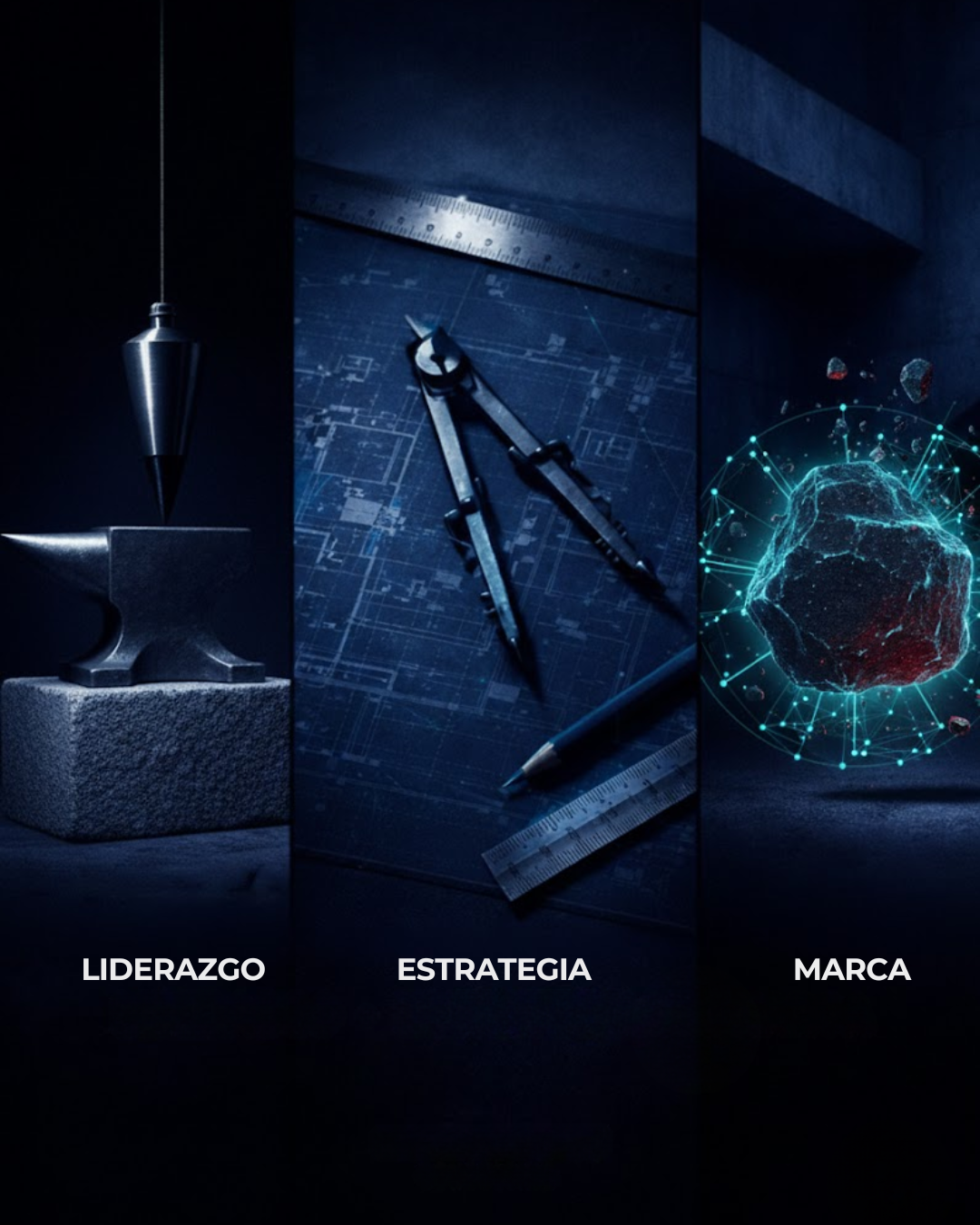Para que la diferenciación y el posicionamiento sean sostenibles y tu "roca" no se desmorone, activamos nuestra Tríada de Poder: LIDERAZGO + ESTRATEGIA + MARCA. La cual presentamos como nuestra base estructural donde operamos en las organizaciones.